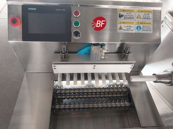 2.采用光電傳感器控制切條長度,保證藥條長度一致,每條制品數(shù)量恒定,藥頭短小,且藥頭與成品分流,免去在成品中挑選藥頭。